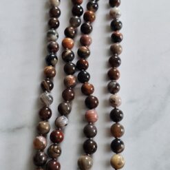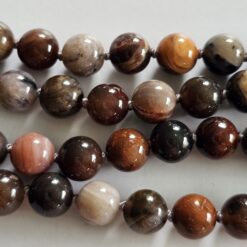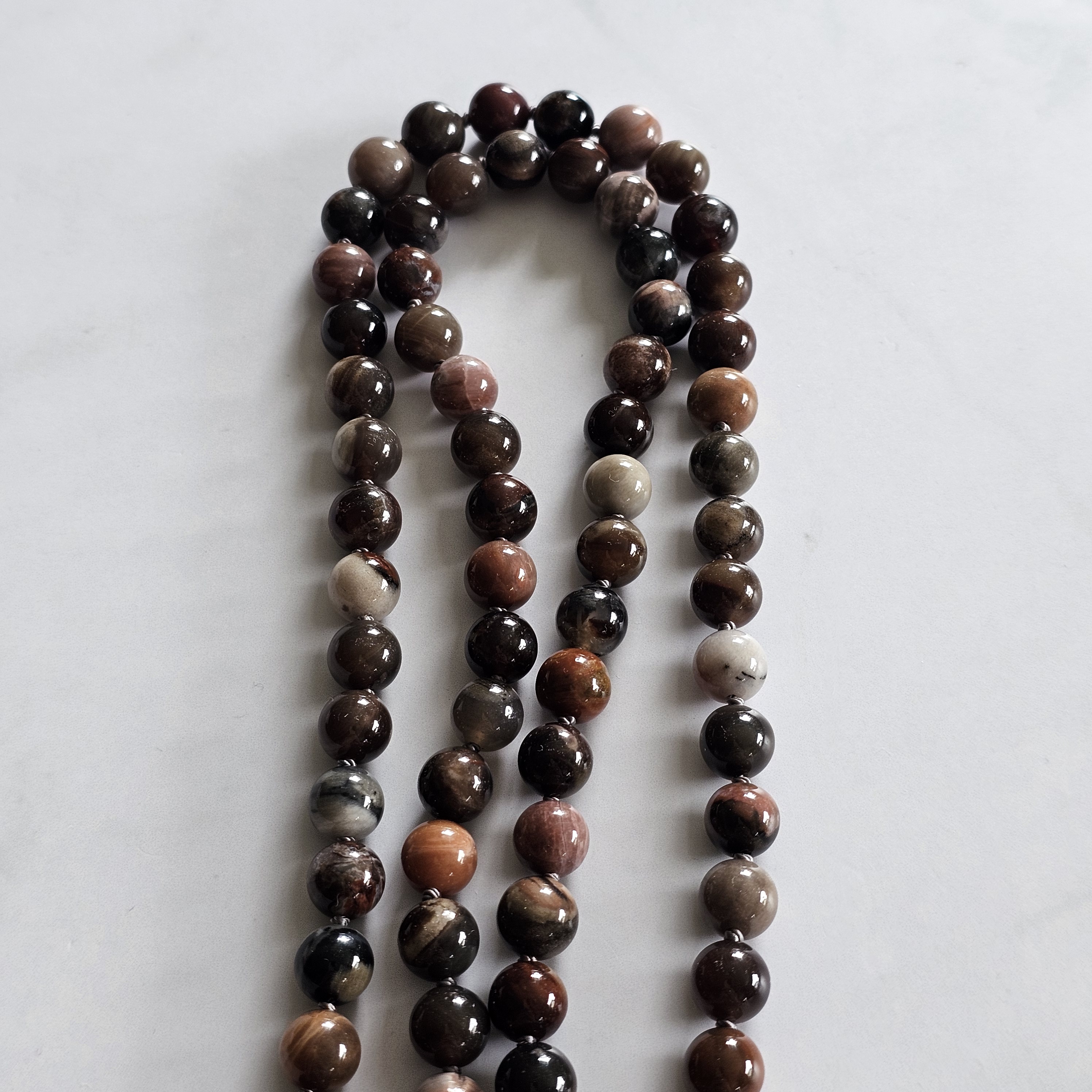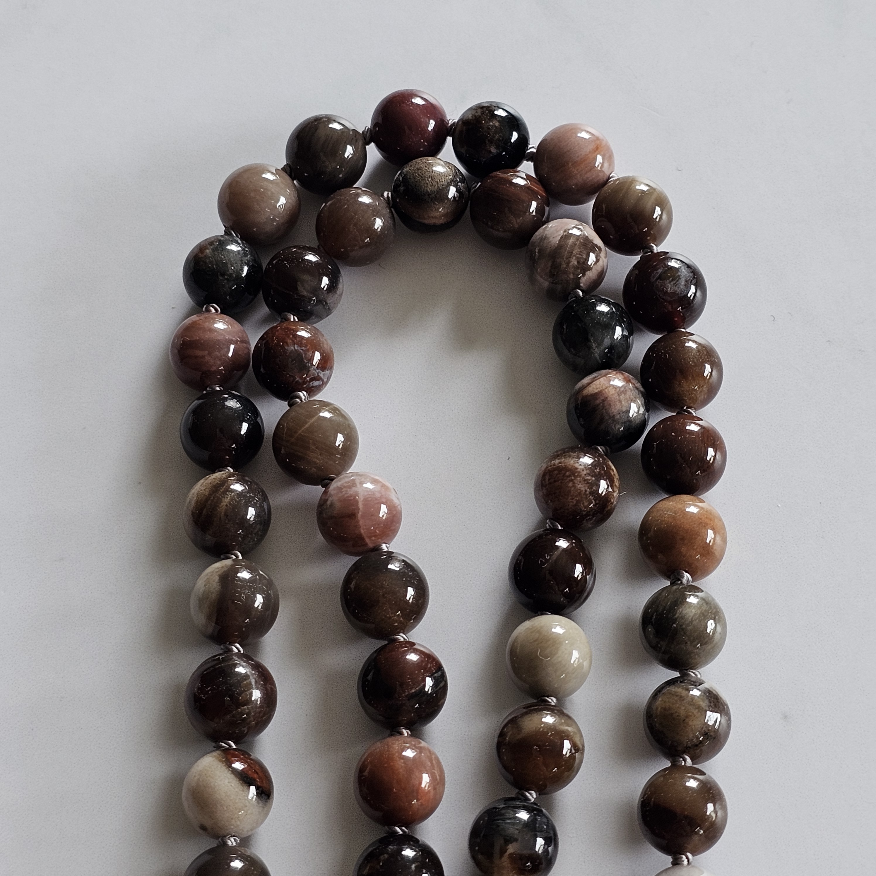 Sie besteht aus 108 8 mm großen, versteinerten Holz-Perlen.